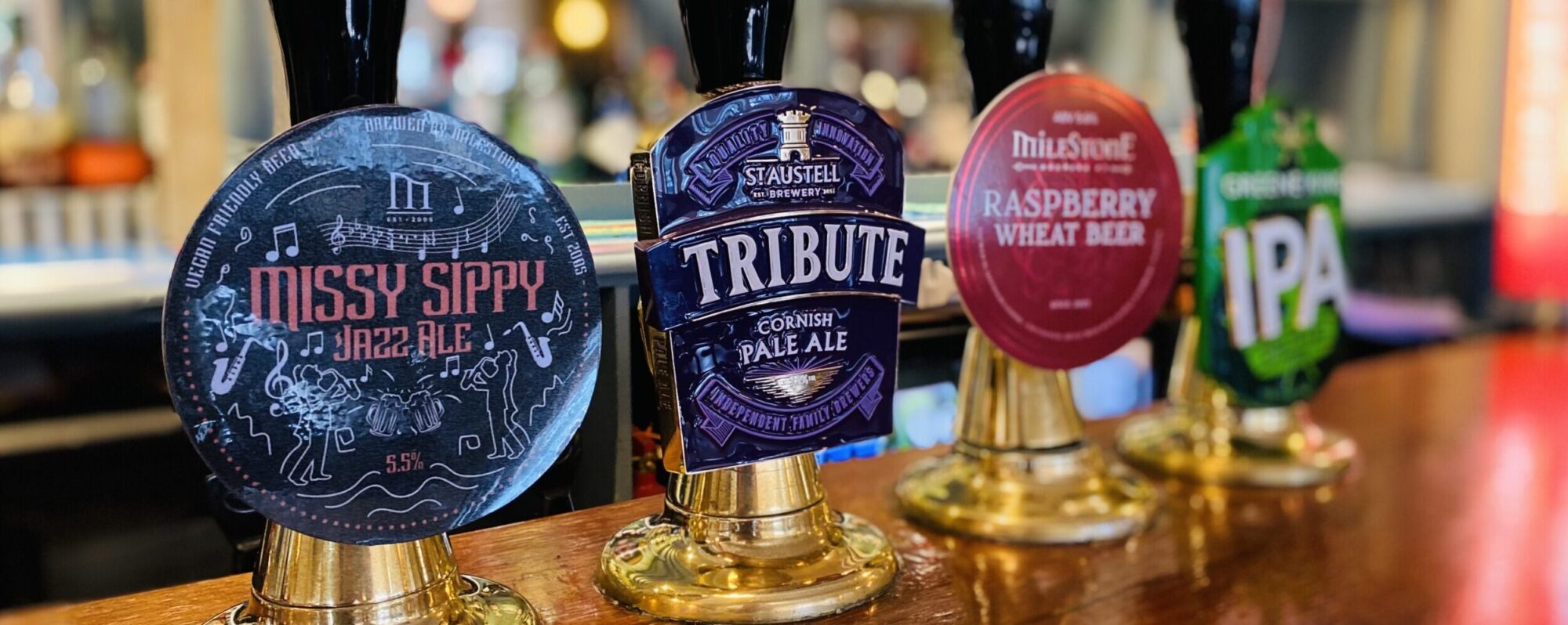 The bar serves an excellent range of quality drinks, with cask ales St Austell’s Tribute and Greene King IPA plus 2 rotating guest ales. The beer range is exceptional with Blue Moon, Amstel, Guinness, Neck Oil, Prava, Madri, Punk IPA, Staropramen, Ice Breaker, Estrella and Aspall cider. We also have a good range of gluten free and alcohol free bottled beers in our fridges. Plus a great selection of quality wines by the glass and bottle and a good selection of premium gins all served with Fever Tree tonic.